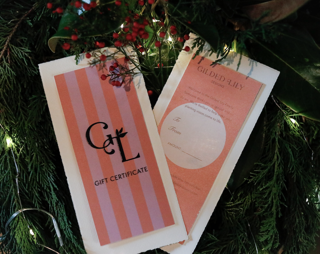 Further questions about Gift Certificates? Email us at brit@gildedlilydesigns.com or call (804) 399-0111.